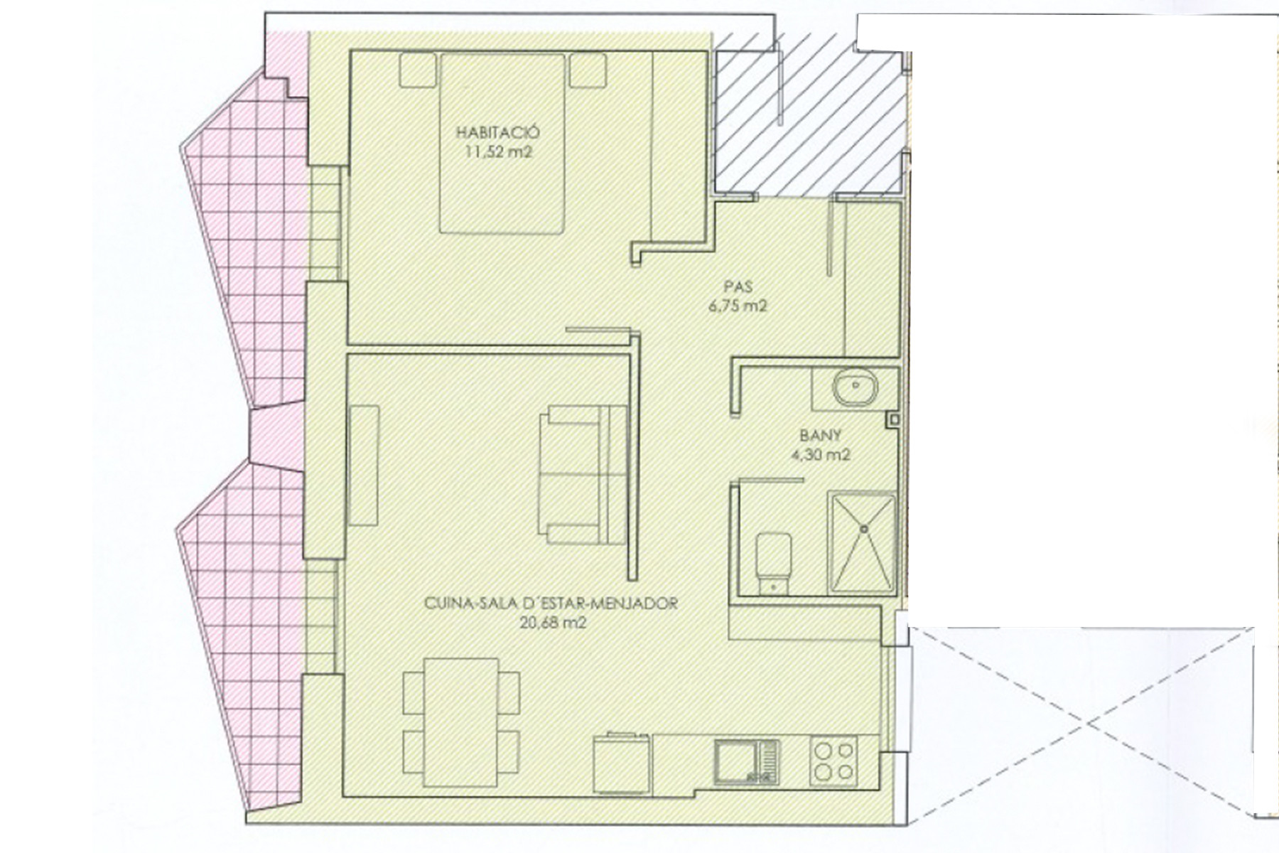 Con una superficie de 51,53 m², esta propiedad cuenta con una agradable terraza que ofrece vistas espectaculares a la montaña y a la ciudad. El interior incluye un amplio salón-comedor con acceso a la terraza, ideal para disfrutar de momentos de relax y ocio. La cocina, diseñada en un estilo abierto, conecta perfectamente con el salón-comedor y tiene acceso a un patio interior, aportando funcionalidad.